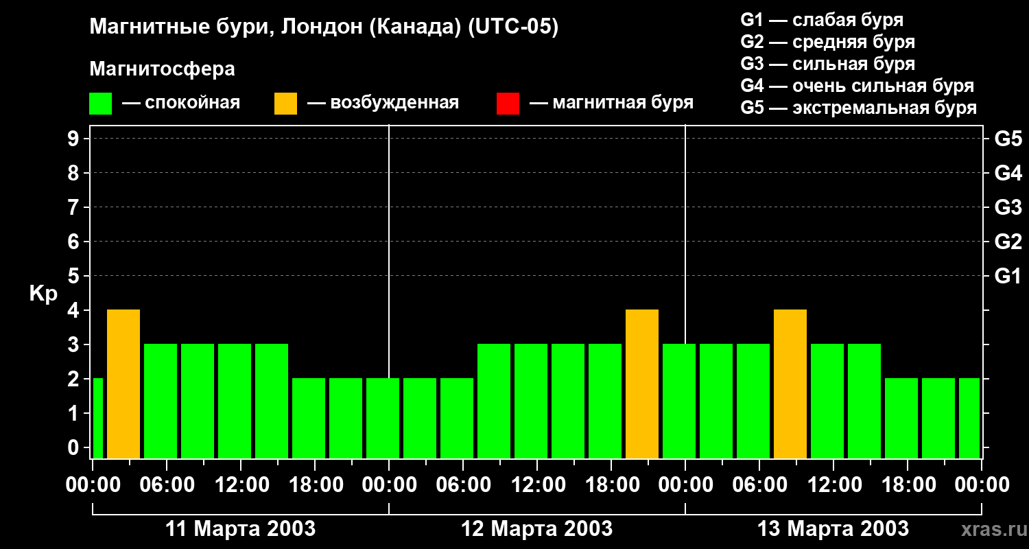 Магнитные бури Лондоне (Канада) — 13 марта 2003 года