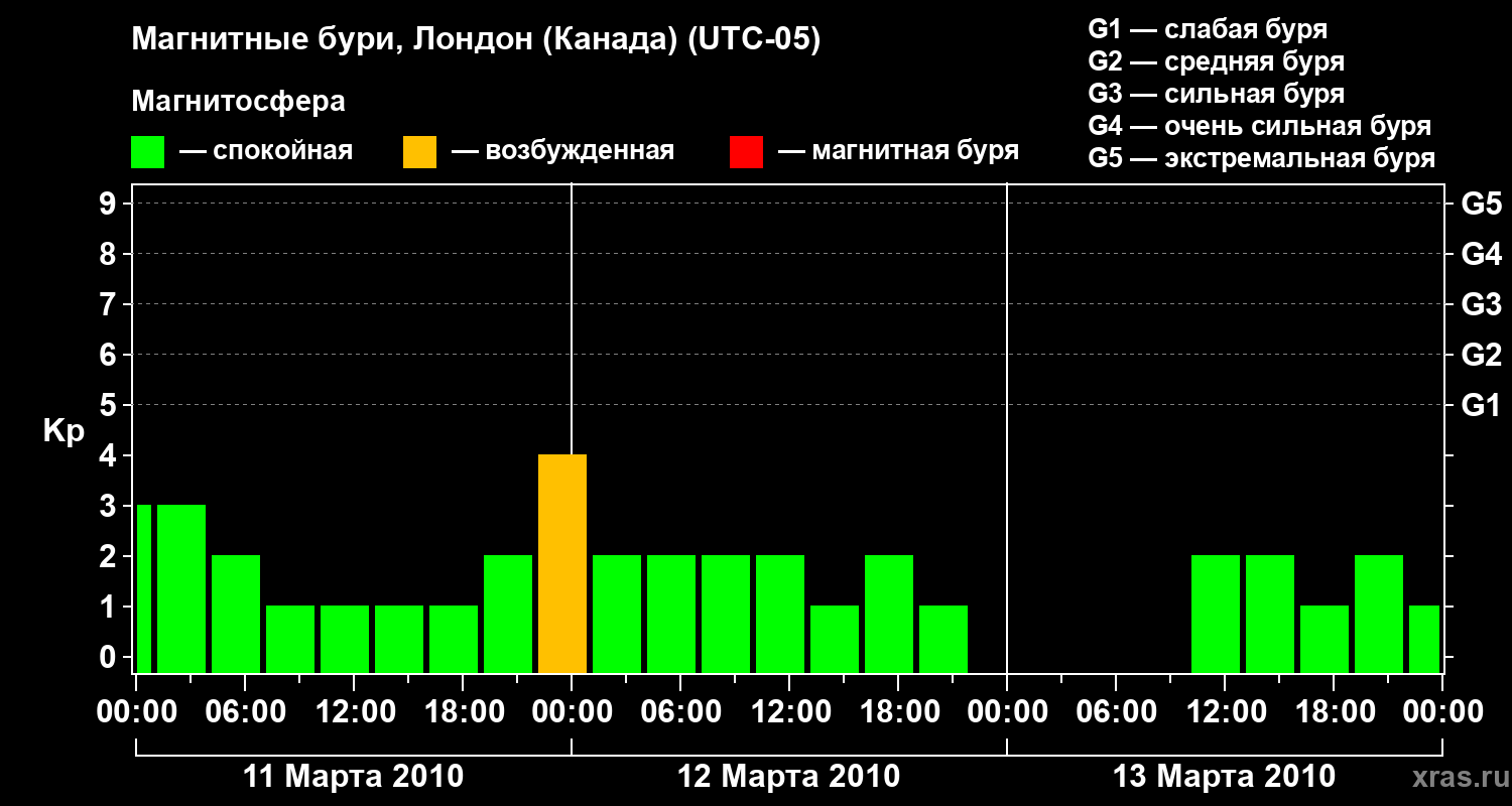 Магнитные бури Лондоне (Канада) — 13 марта 2010 года