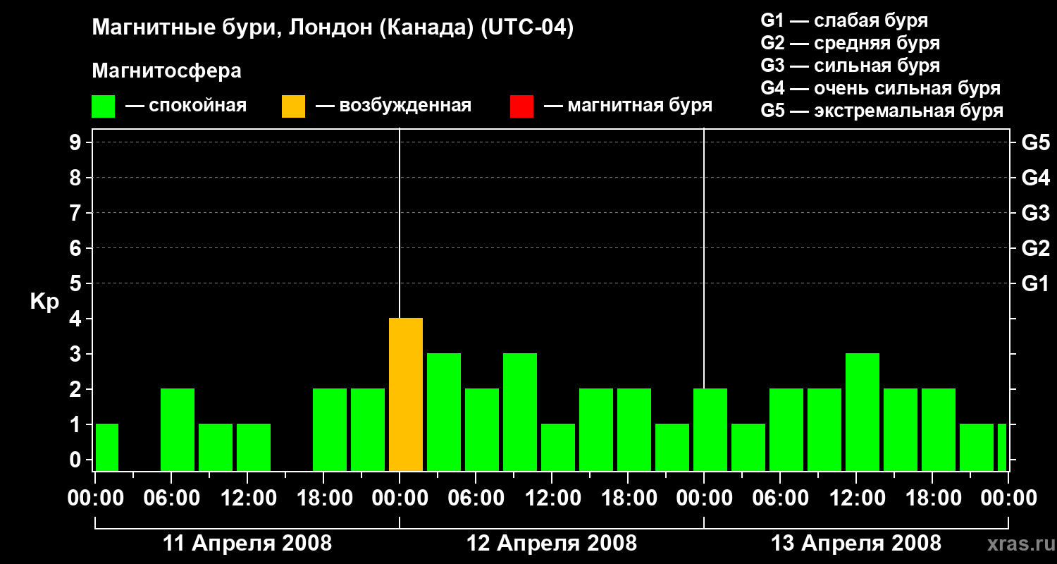 Магнитные бури Лондоне (Канада) — 13 апреля 2008 года