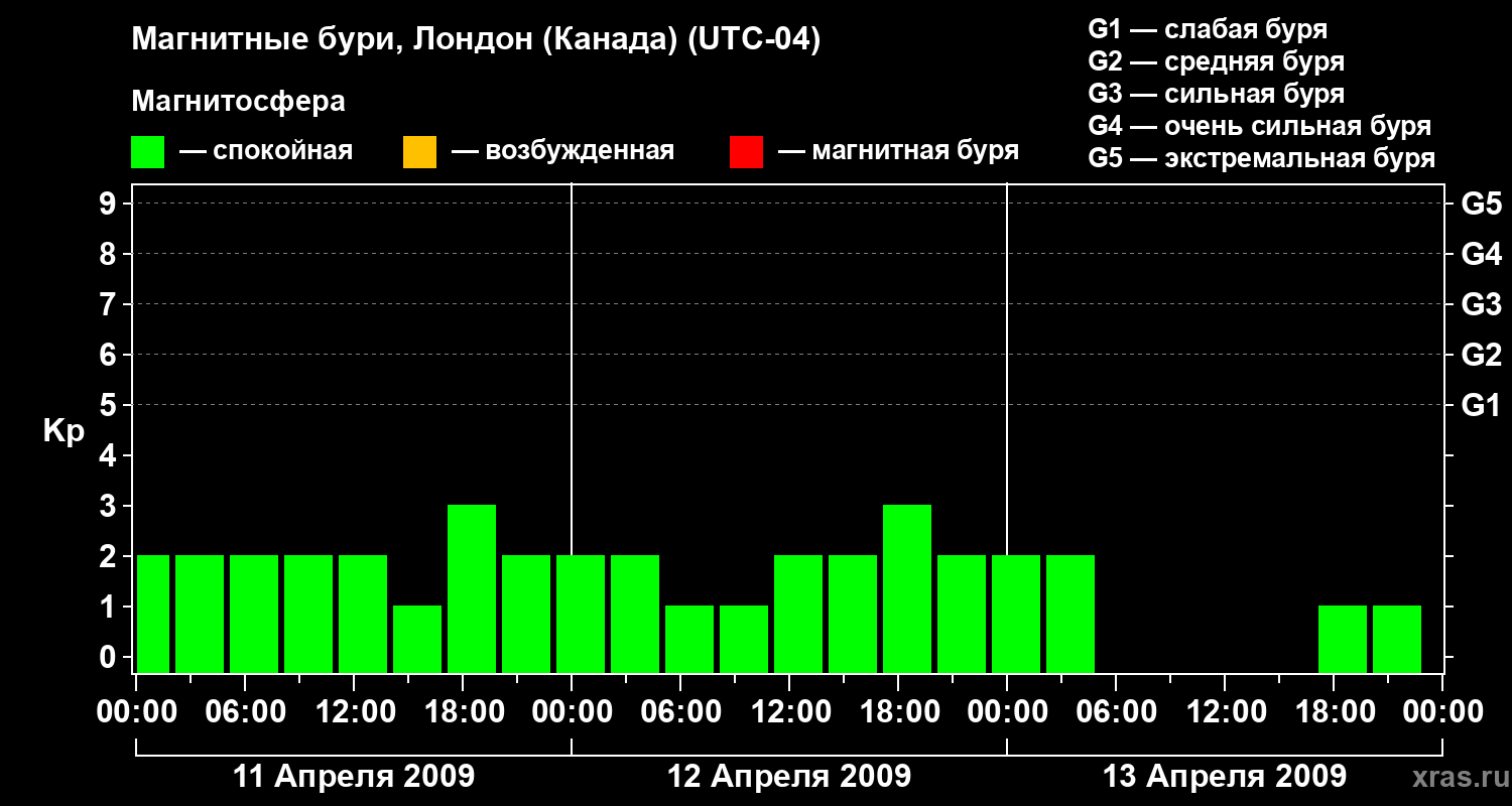 Магнитные бури Лондоне (Канада) — 13 апреля 2009 года