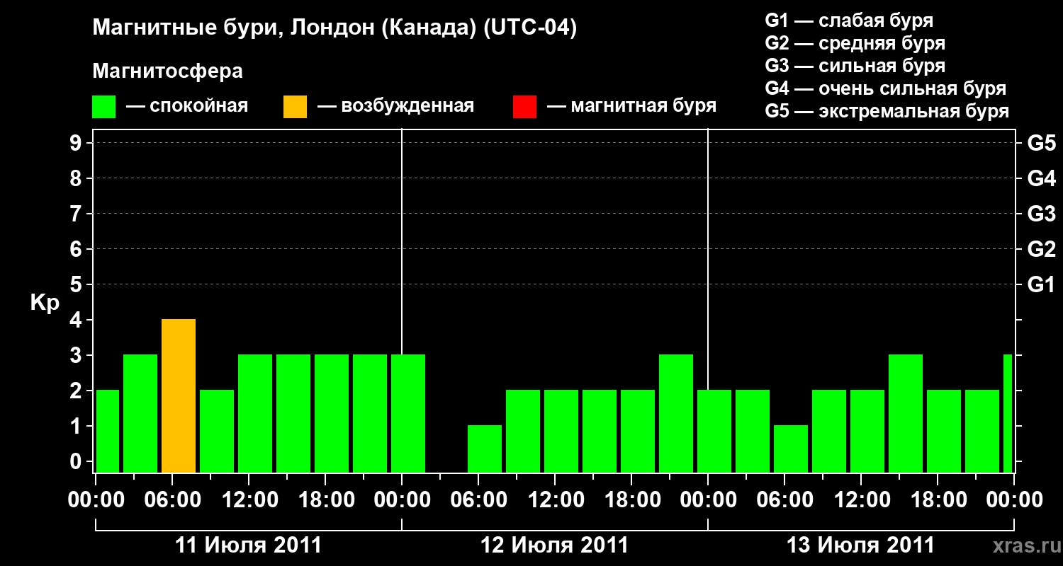 Магнитные бури Лондоне (Канада) — 13 июля 2011 года