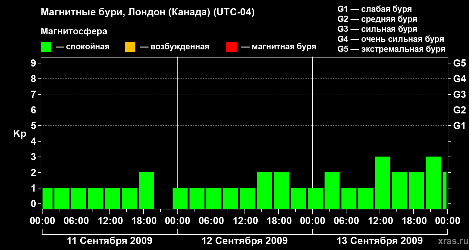 Магнитные бури Лондоне (Канада) в сентябре 2009 года