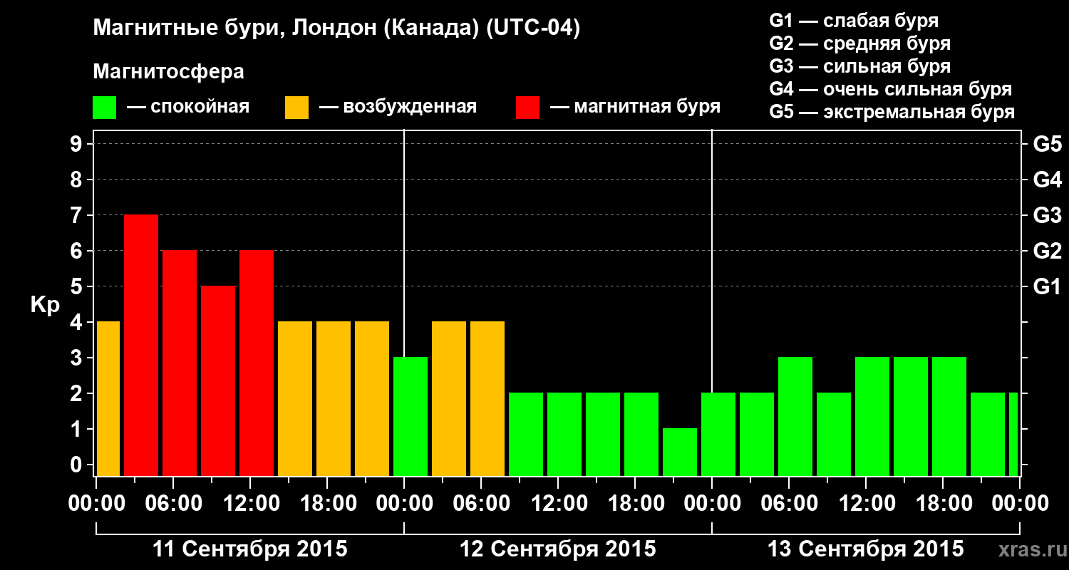 Магнитные бури Лондоне (Канада) 13 сентября 2015 года