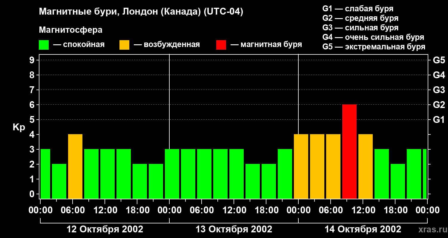 Магнитные бури Лондоне (Канада) — 14 октября 2002 года