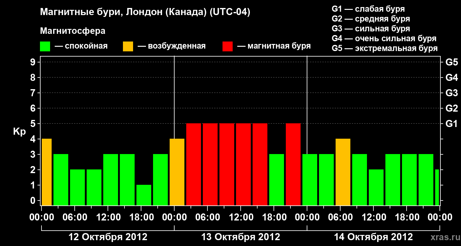 Магнитные бури Лондоне (Канада) 14 октября 2012 года
