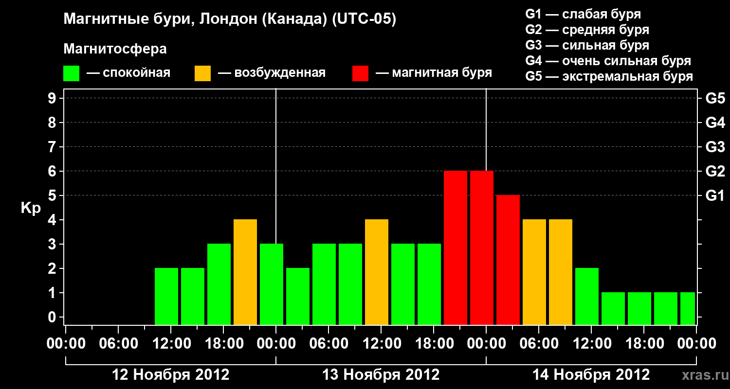 Магнитные бури Лондоне (Канада) в ноябре 2012 года