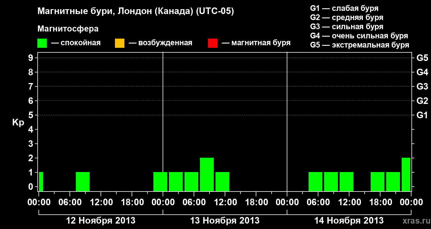Магнитные бури Лондоне (Канада) в ноябре 2013 года