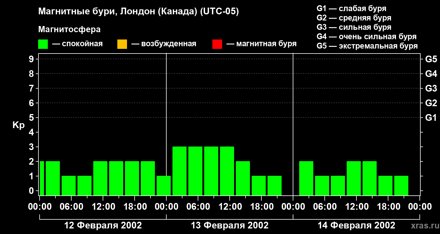 Магнитные бури Лондоне (Канада) в феврале 2002 года