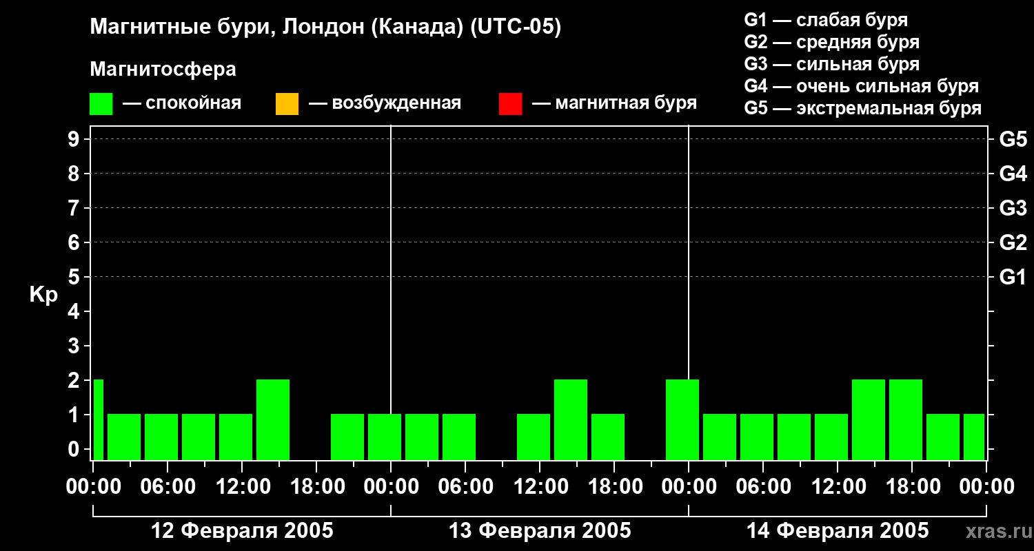 Магнитные бури Лондоне (Канада) в феврале 2005 года