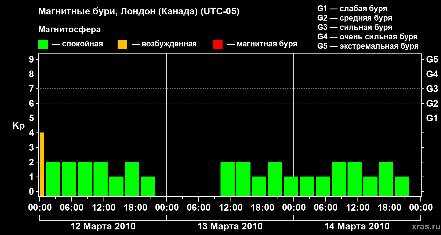 Магнитные бури Лондоне (Канада) — 14 марта 2010 года