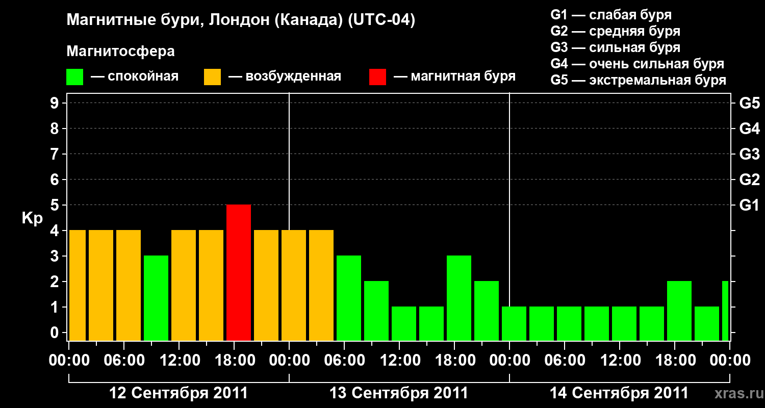 Магнитные бури Лондоне (Канада) в сентябре 2011 года
