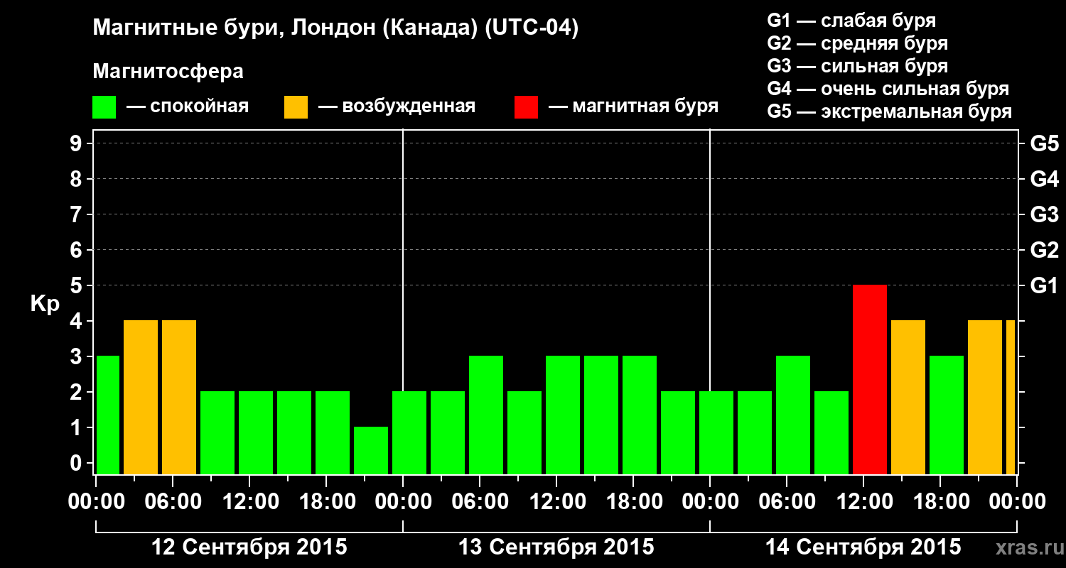 Магнитные бури Лондоне (Канада) 14 сентября 2015 года