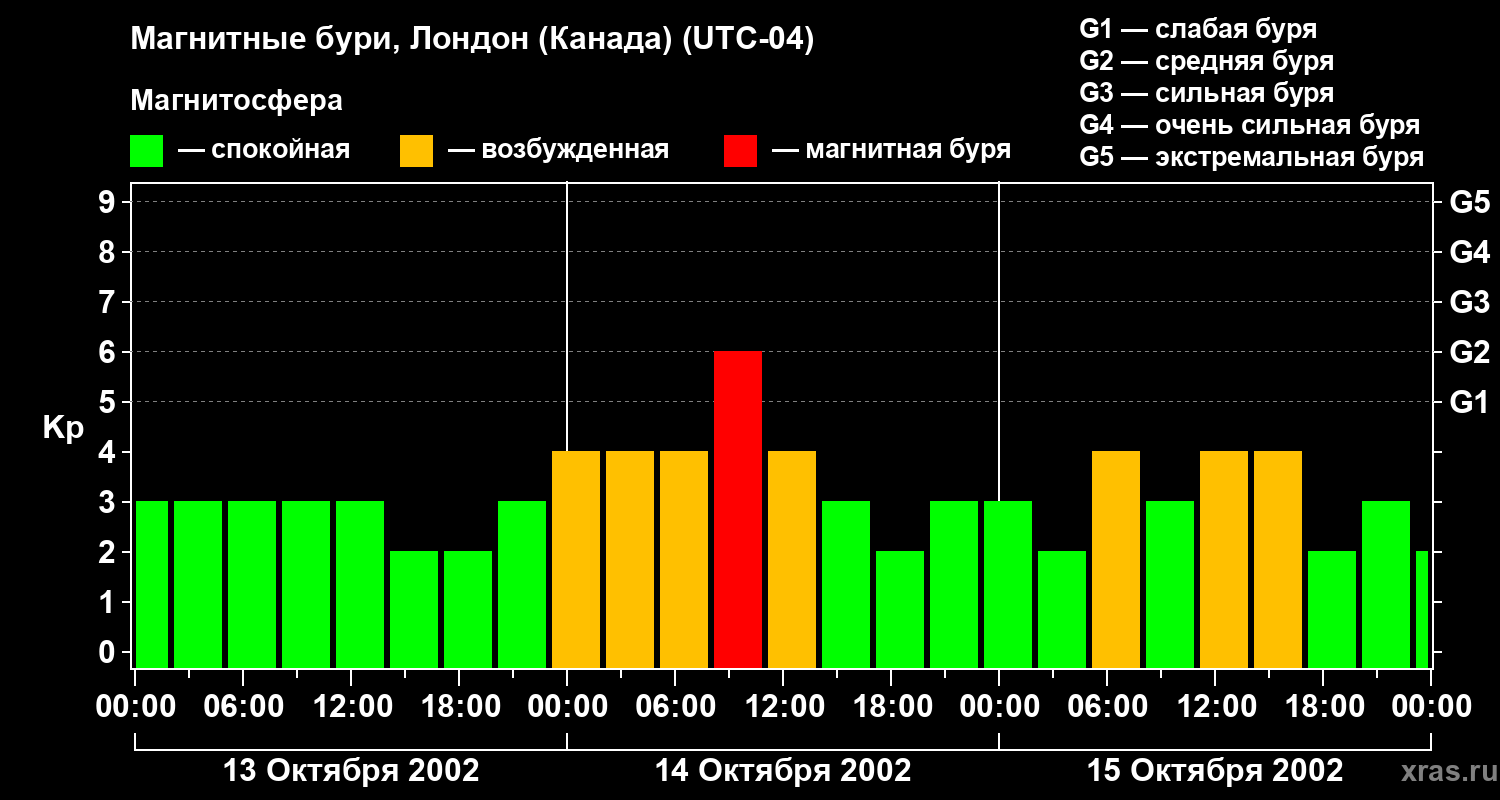 Магнитные бури Лондоне (Канада) — 15 октября 2002 года