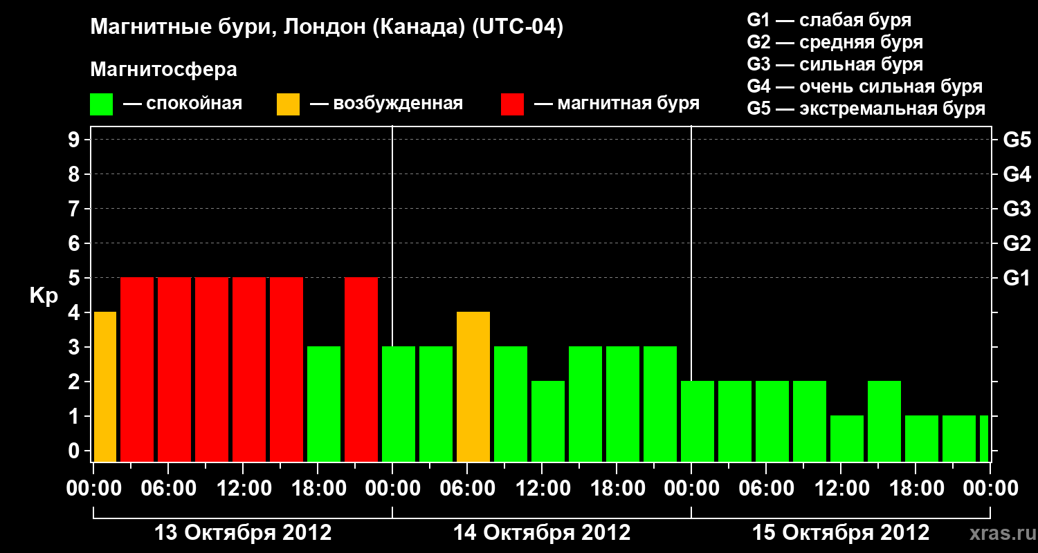 Магнитные бури Лондоне (Канада) — 15 октября 2012 года