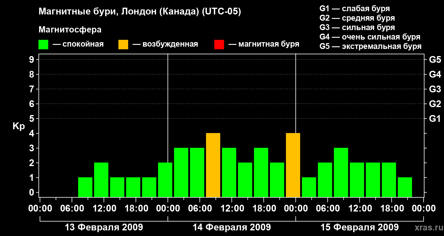 Магнитные бури Лондоне (Канада) в феврале 2009 года