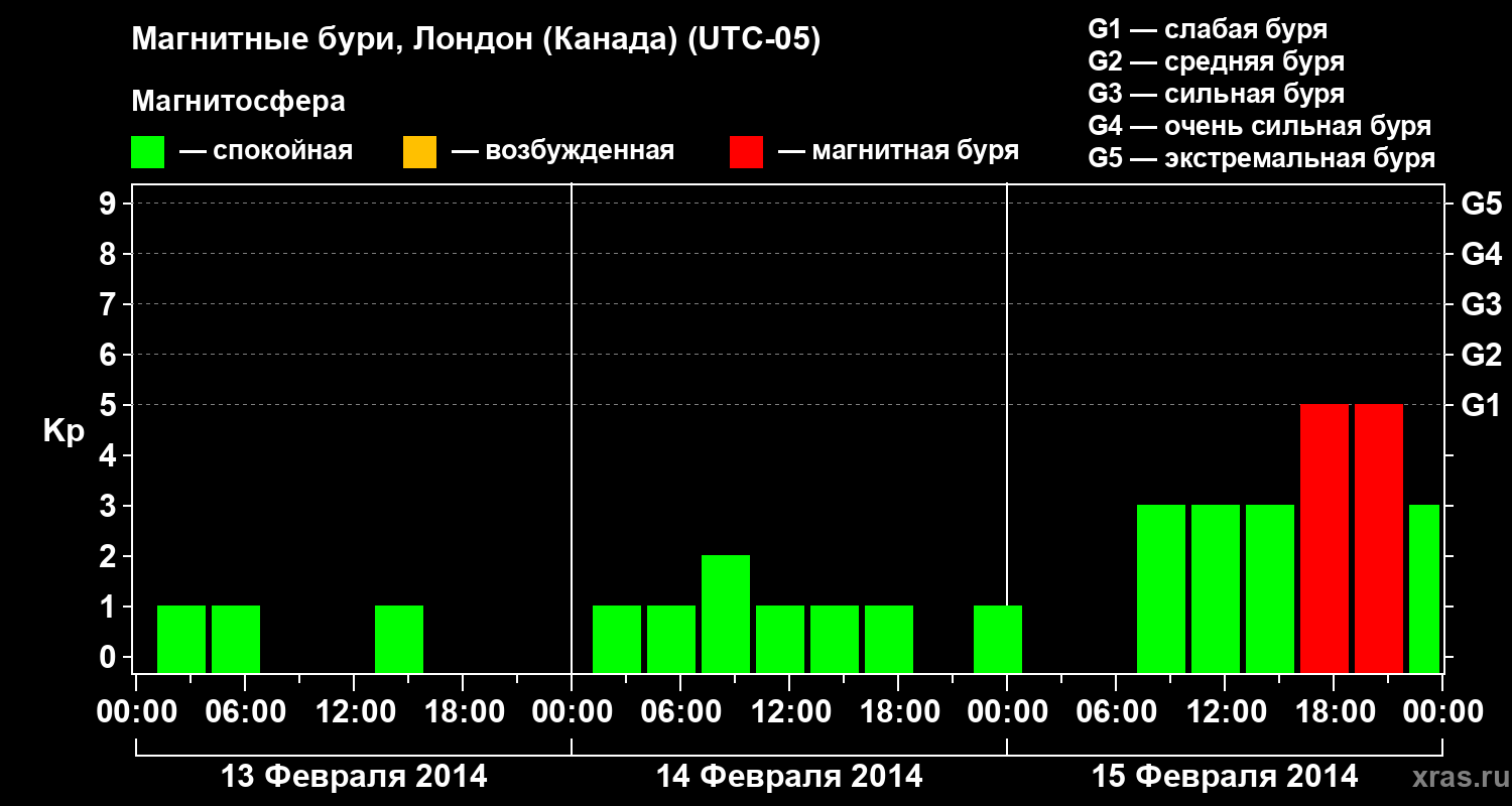 Магнитные бури Лондоне (Канада) 15 февраля 2014 года