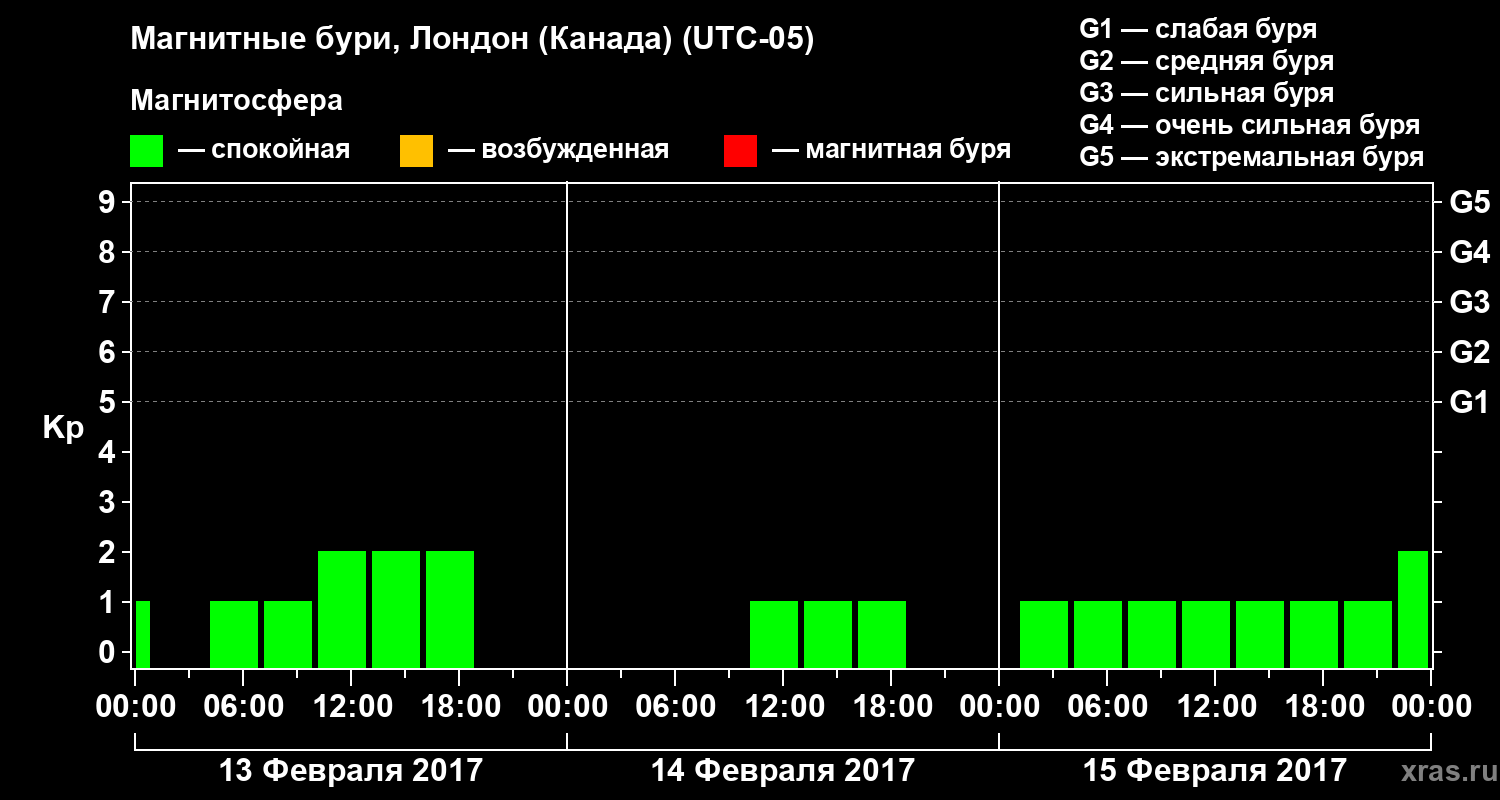 Магнитные бури Лондоне (Канада) 15 февраля 2017 года