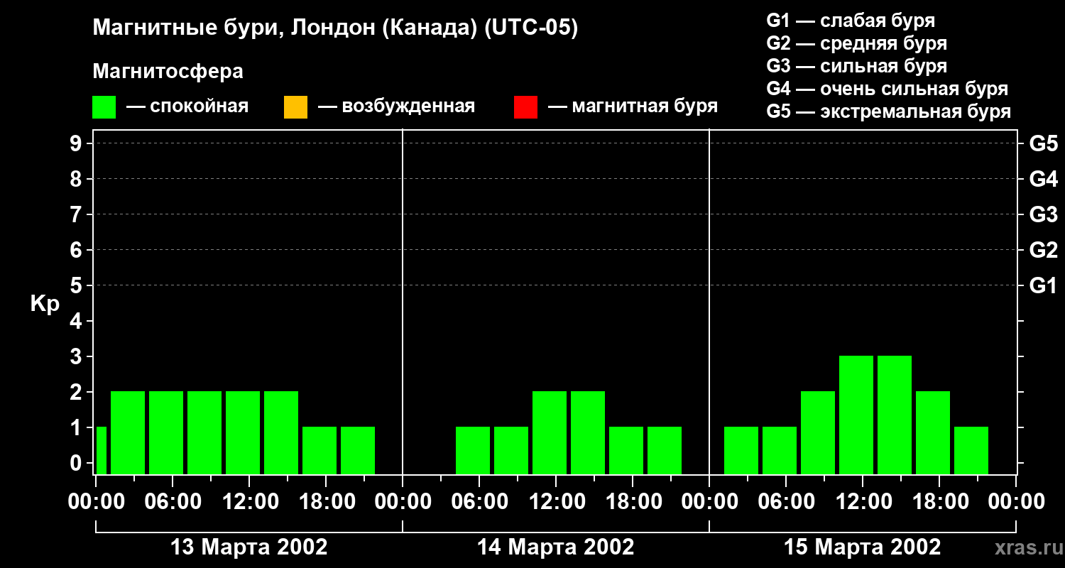 Магнитные бури Лондоне (Канада) — 15 марта 2002 года
