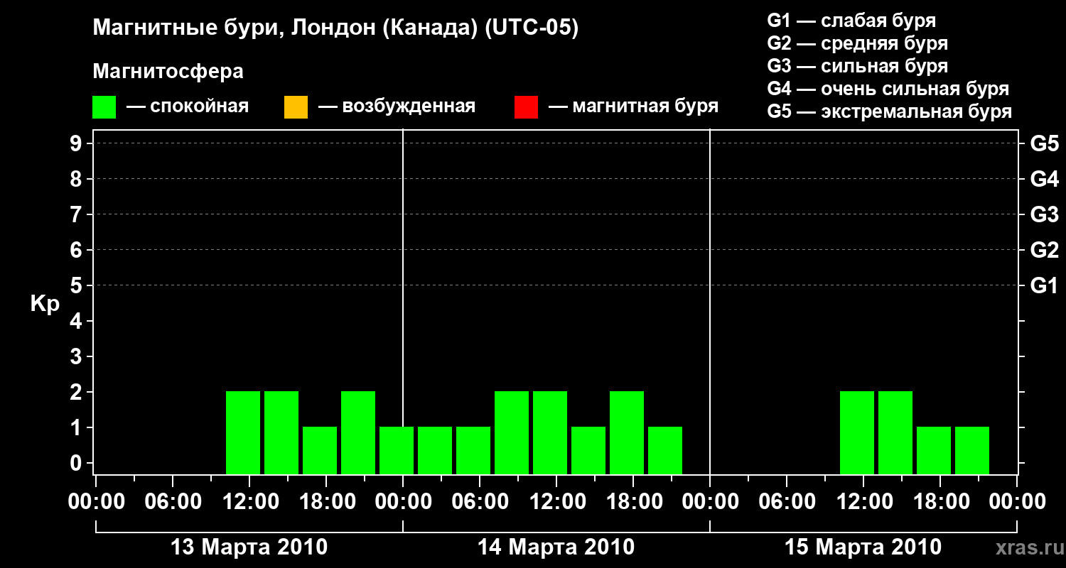 Магнитные бури Лондоне (Канада) 15 марта 2010 года