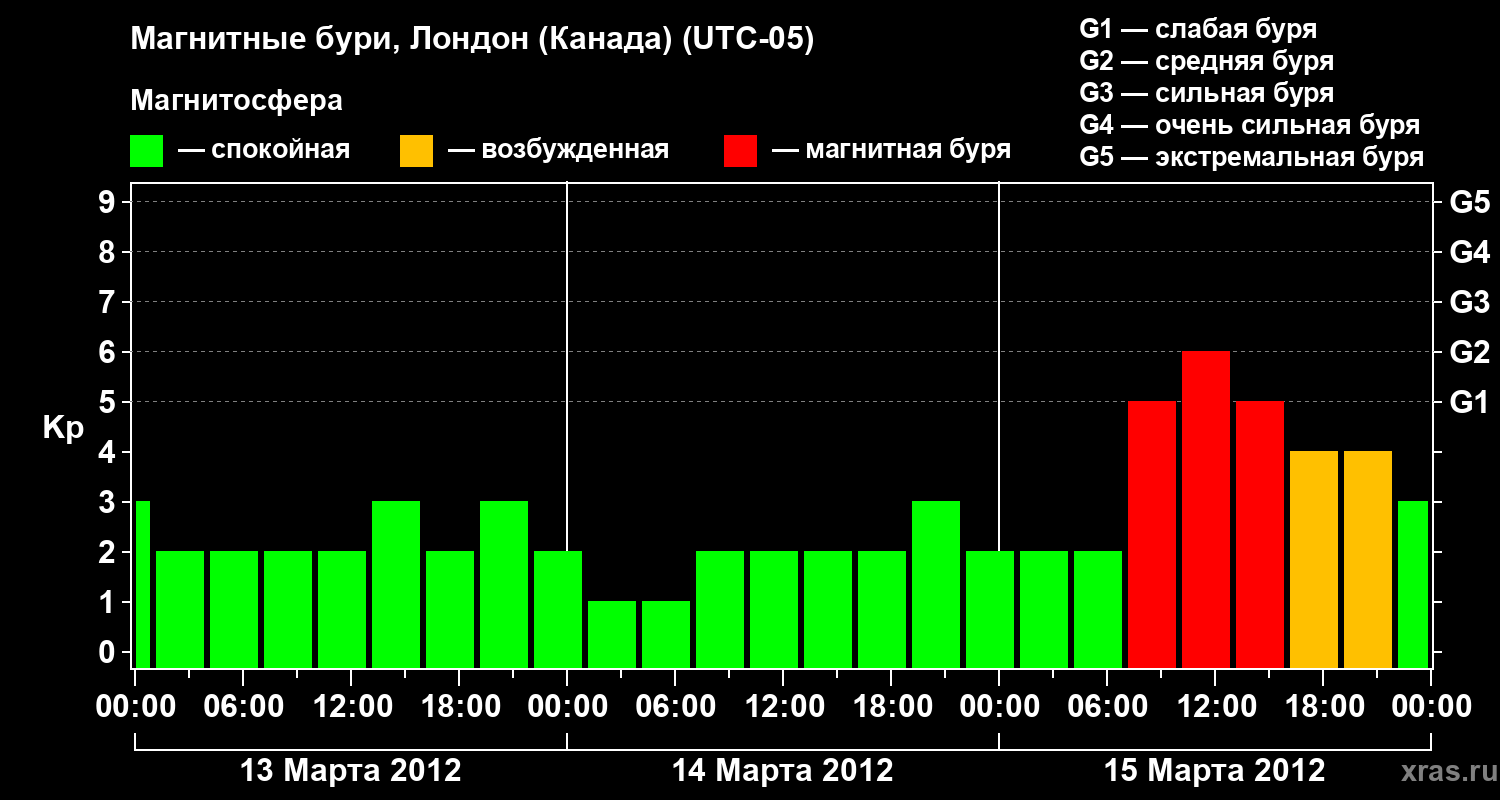 Магнитные бури Лондоне (Канада) 15 марта 2012 года