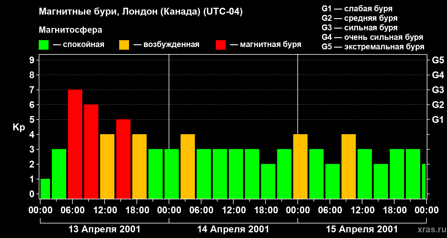 Магнитные бури Лондоне (Канада) в апреле 2001 года