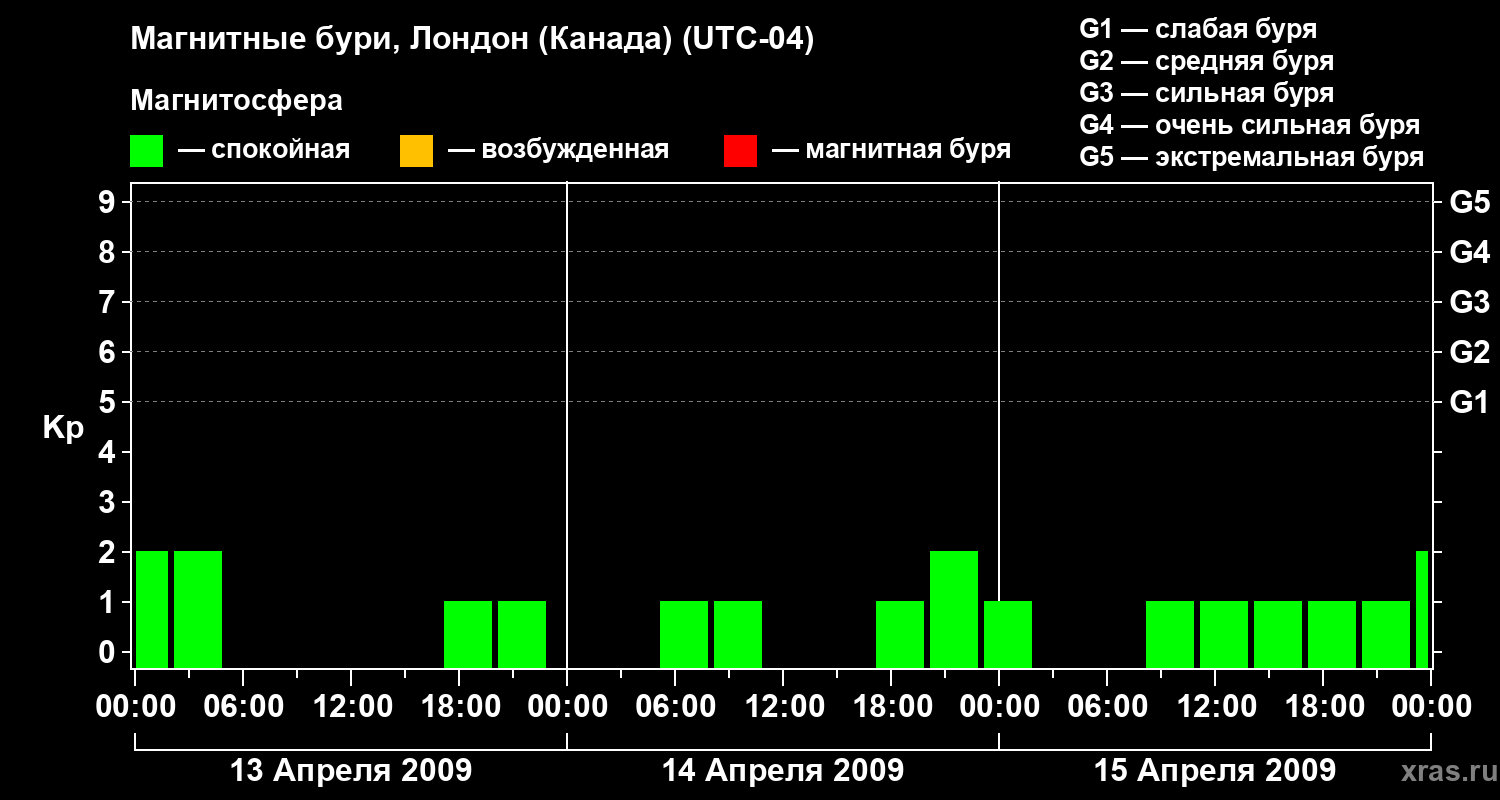 Магнитные бури Лондоне (Канада) в апреле 2009 года