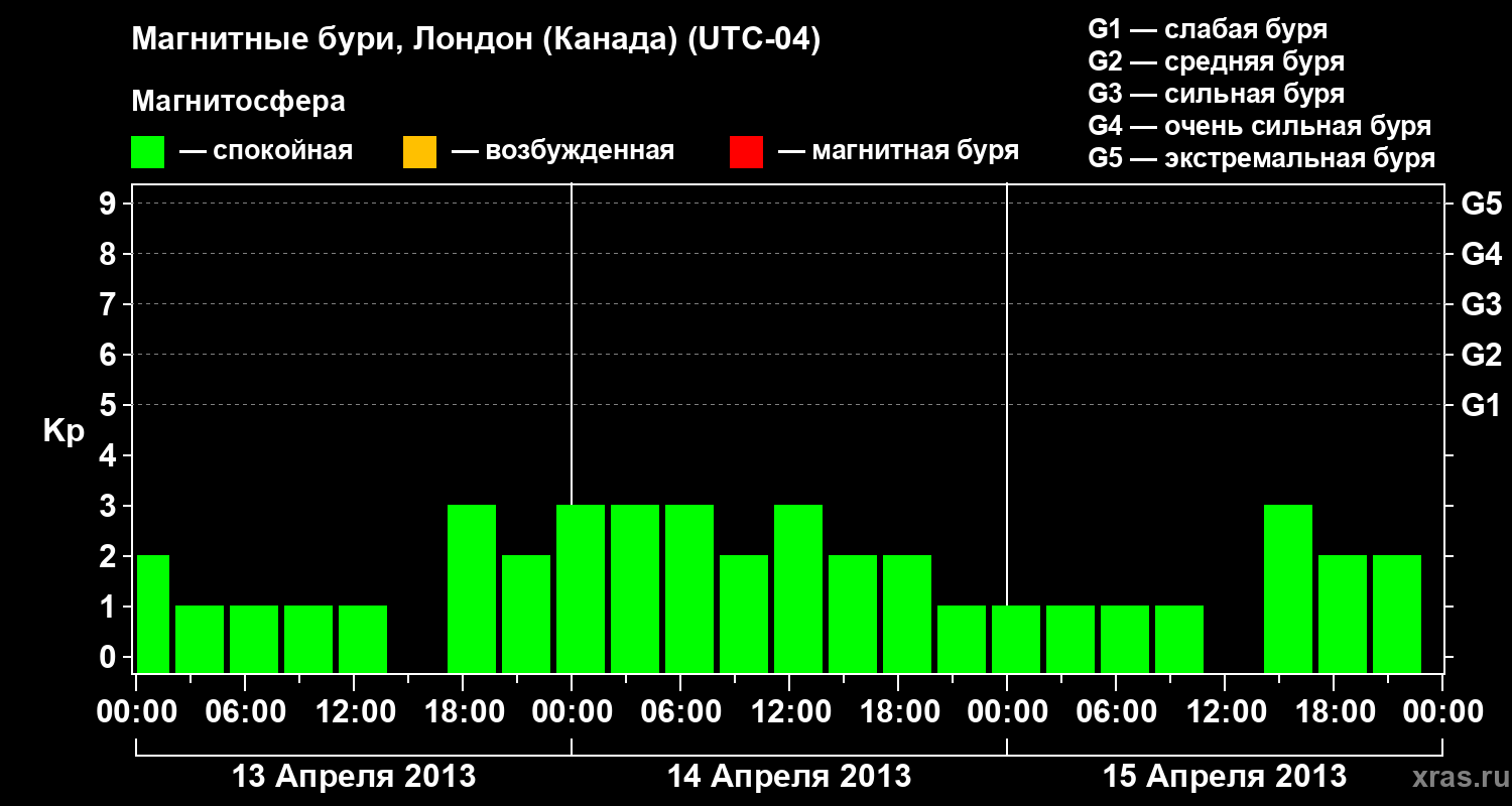 Магнитные бури Лондоне (Канада) в апреле 2013 года