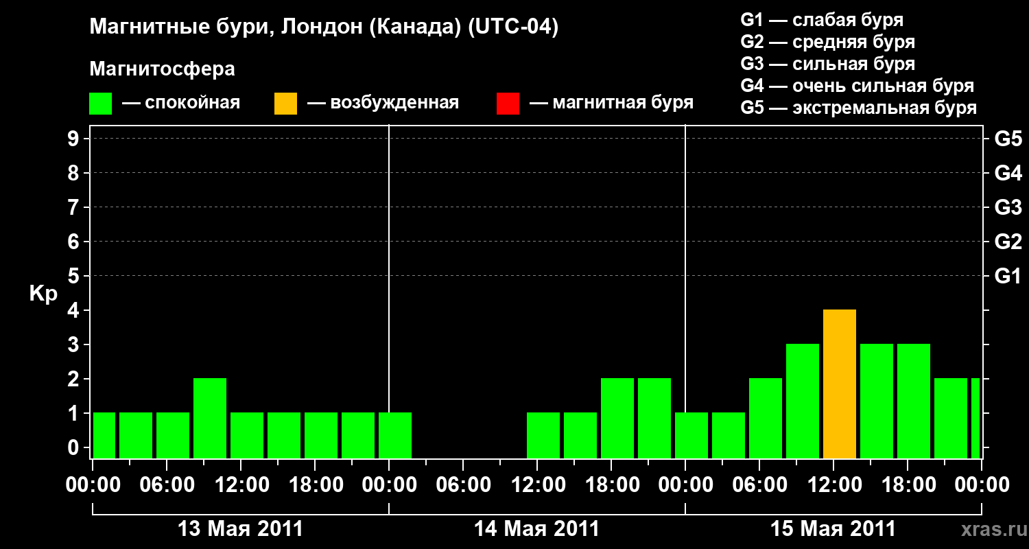 Магнитные бури Лондоне (Канада) — 15 мая 2011 года