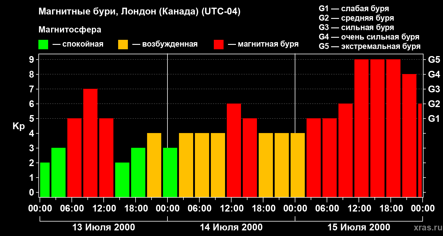 Магнитные бури Лондоне (Канада) — 15 июля 2000 года