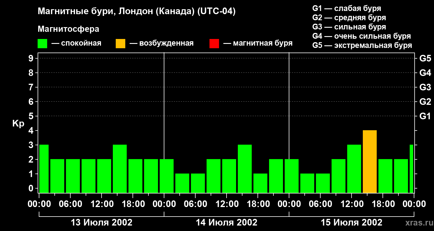 Магнитные бури Лондоне (Канада) — 15 июля 2002 года