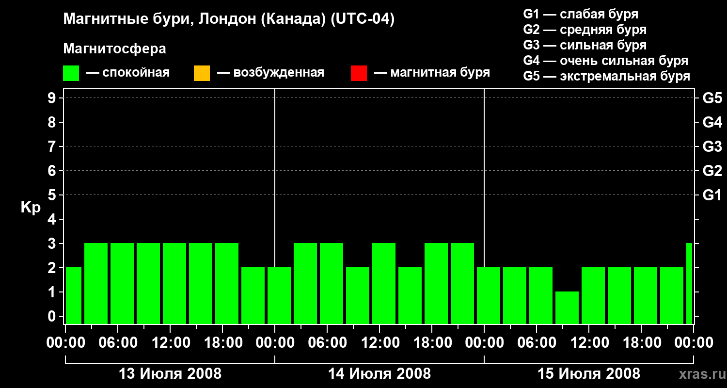 Магнитные бури Лондоне (Канада) в июле 2008 года