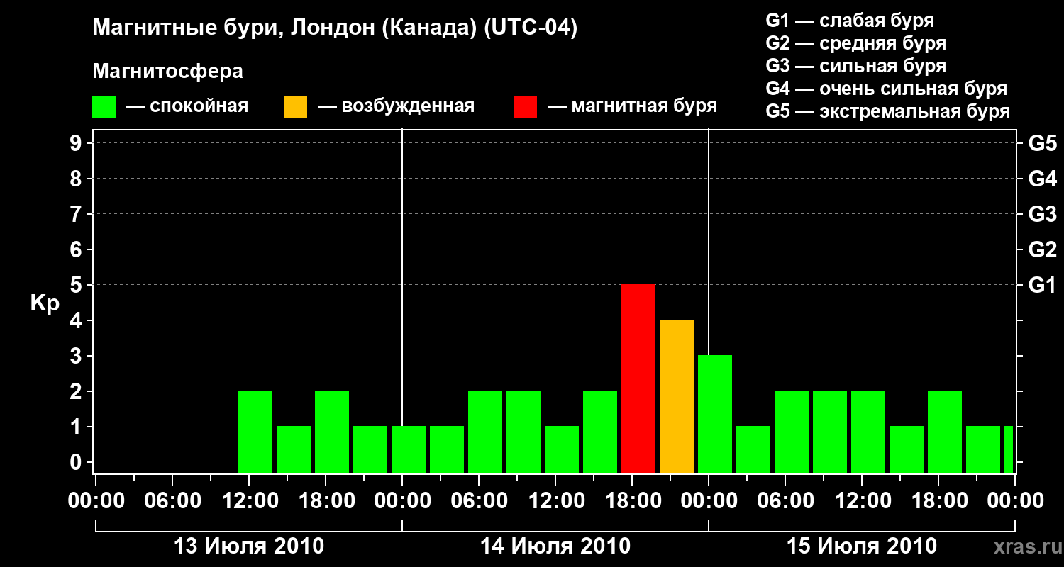 Магнитные бури Лондоне (Канада) в июле 2010 года