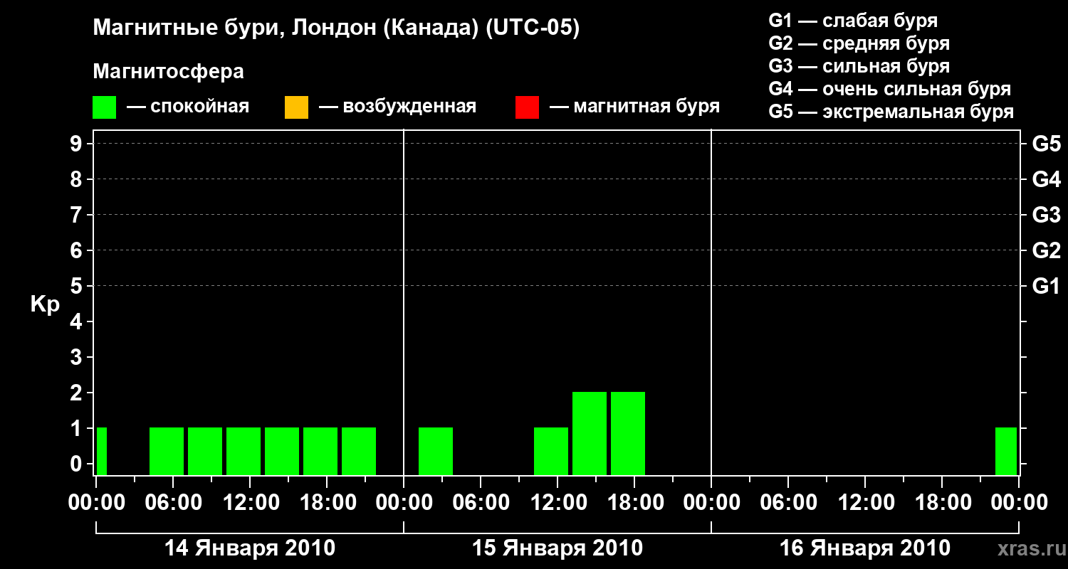 Магнитные бури Лондоне (Канада) 16 января 2010 года