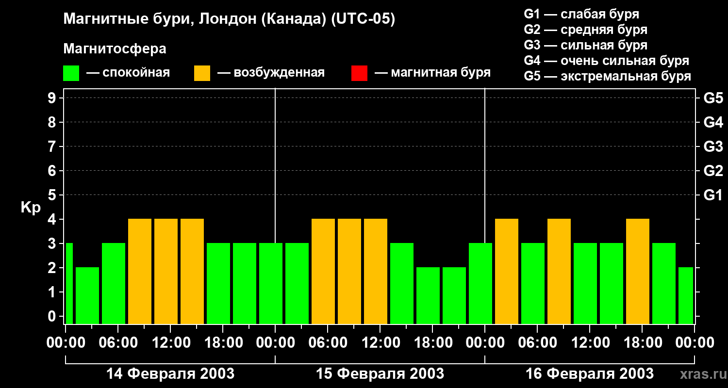 Магнитные бури Лондоне (Канада) — 16 февраля 2003 года