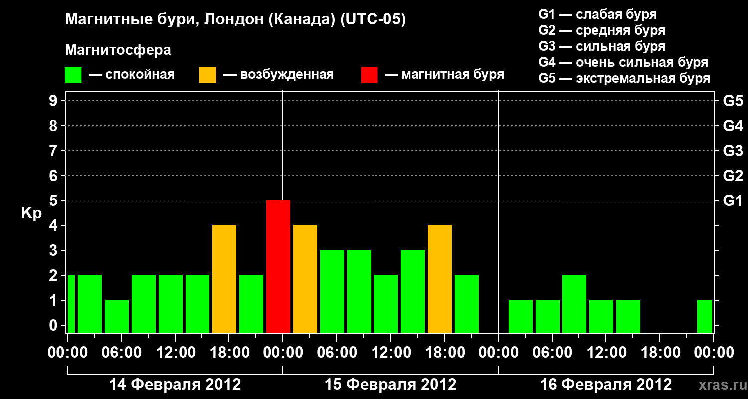 Магнитные бури Лондоне (Канада) в феврале 2012 года