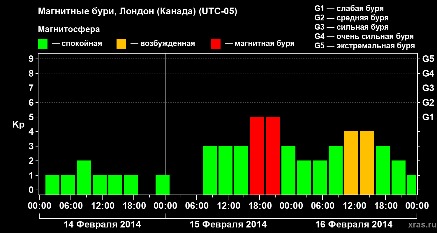 Магнитные бури Лондоне (Канада) в феврале 2014 года