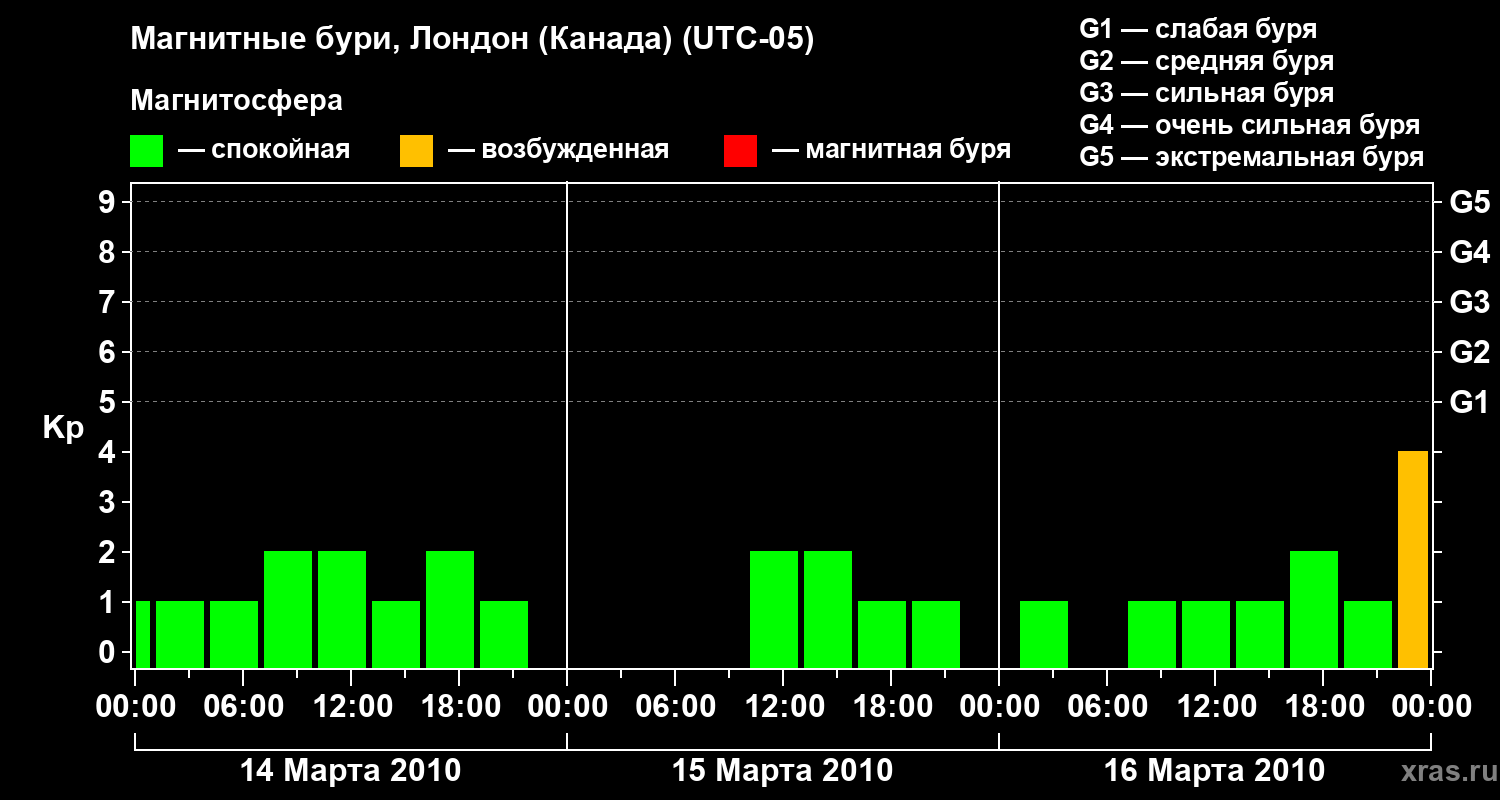 Магнитные бури Лондоне (Канада) 16 марта 2010 года