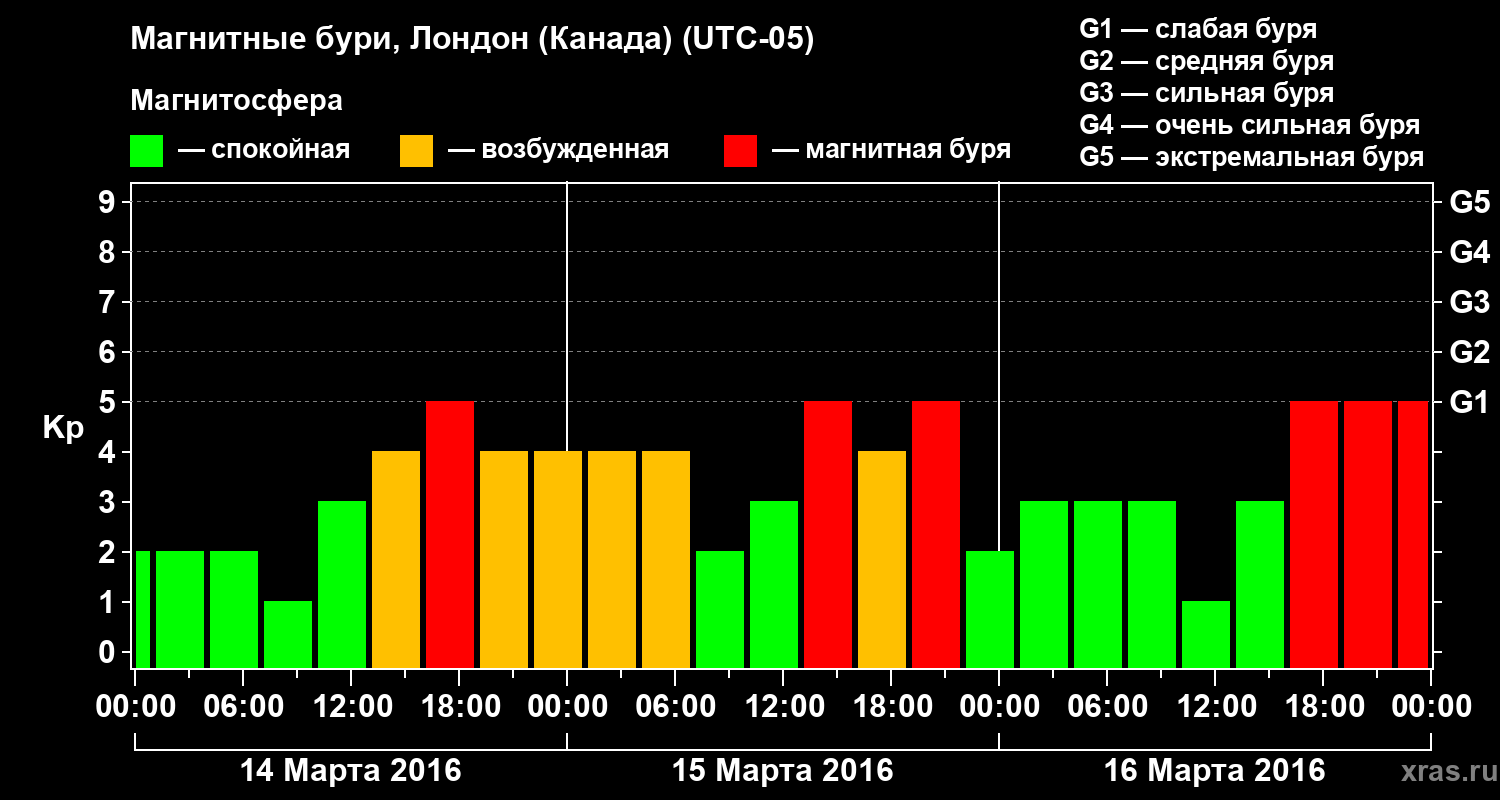 Магнитные бури Лондоне (Канада) — 16 марта 2016 года