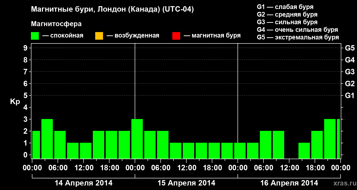 Магнитные бури Лондоне (Канада) в апреле 2014 года