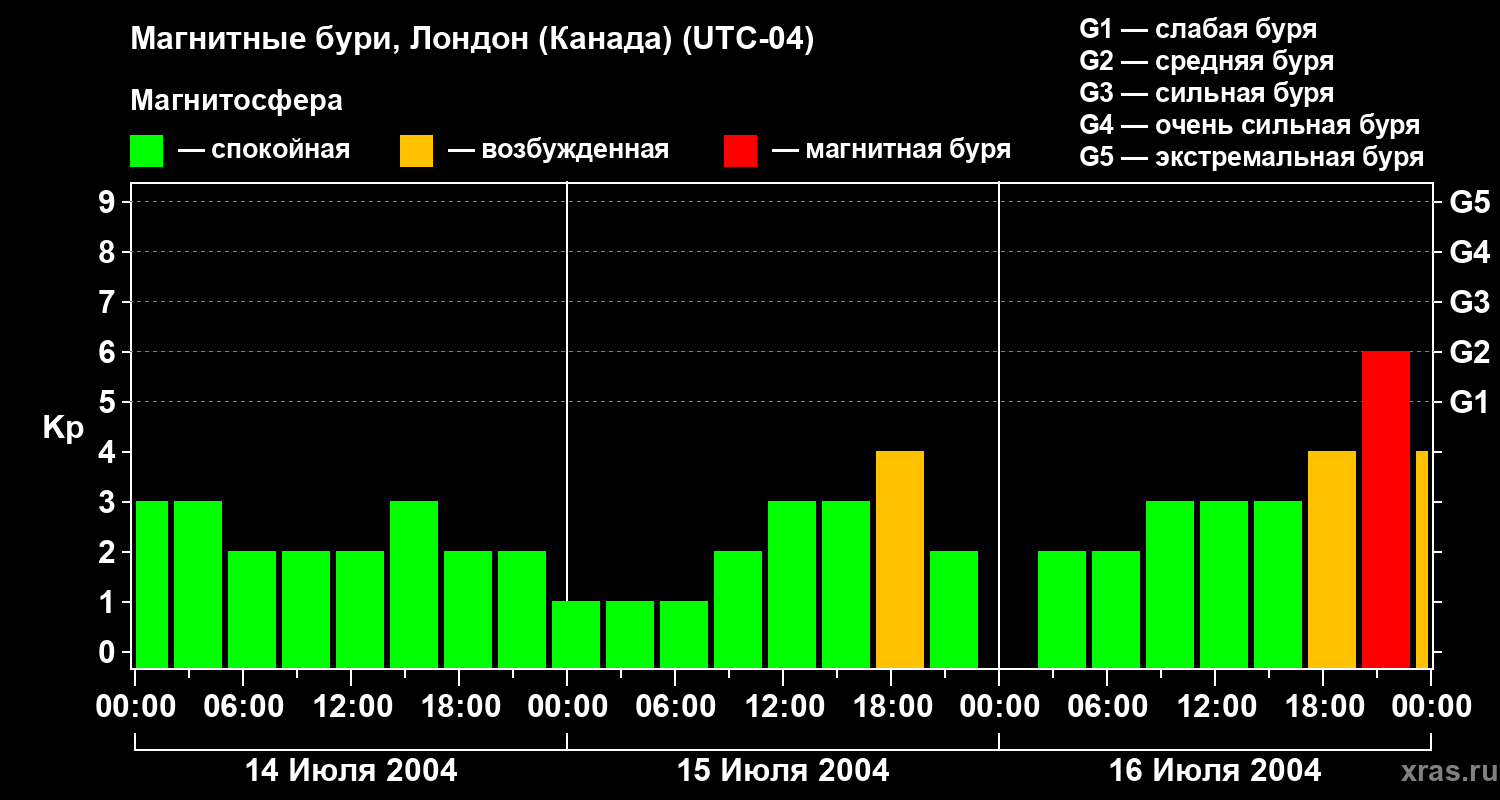 Магнитные бури Лондоне (Канада) — 16 июля 2004 года