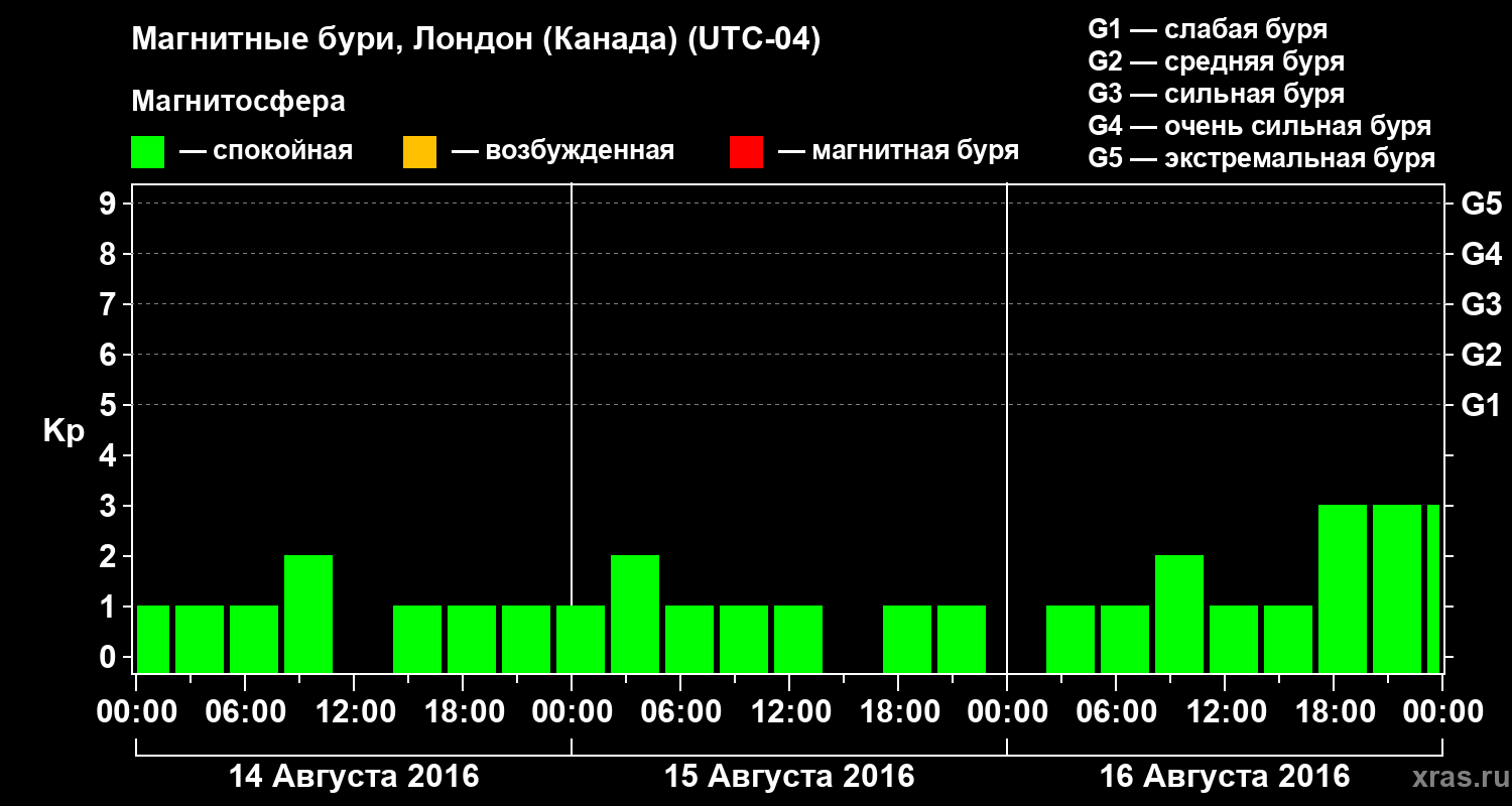 Магнитные бури Лондоне (Канада) — 16 августа 2016 года