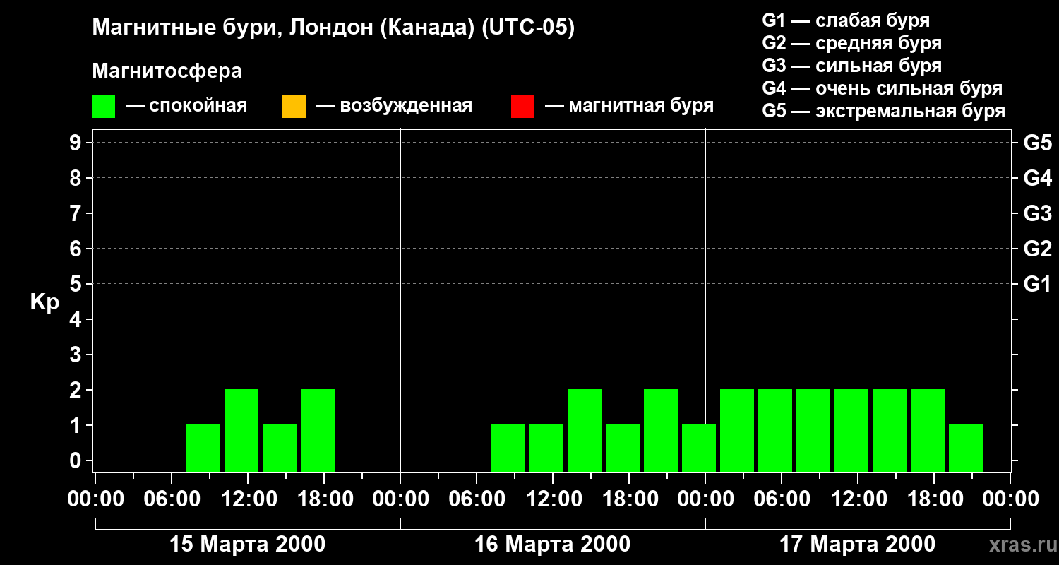 Магнитные бури Лондоне (Канада) — 17 марта 2000 года
