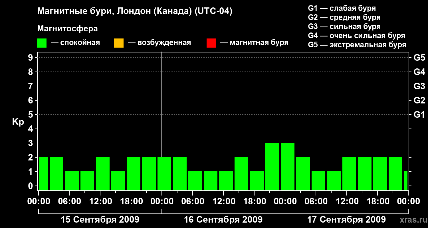 Магнитные бури Лондоне (Канада) в сентябре 2009 года