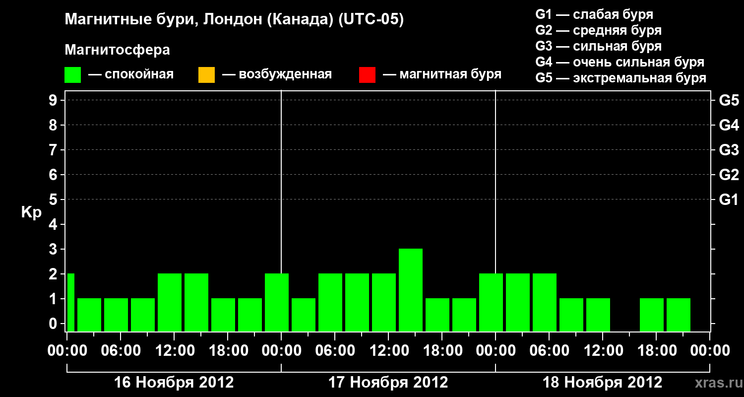 Магнитные бури Лондоне (Канада) 18 ноября 2012 года