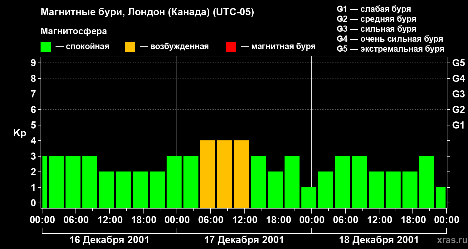 Магнитные бури Лондоне (Канада) — 18 декабря 2001 года