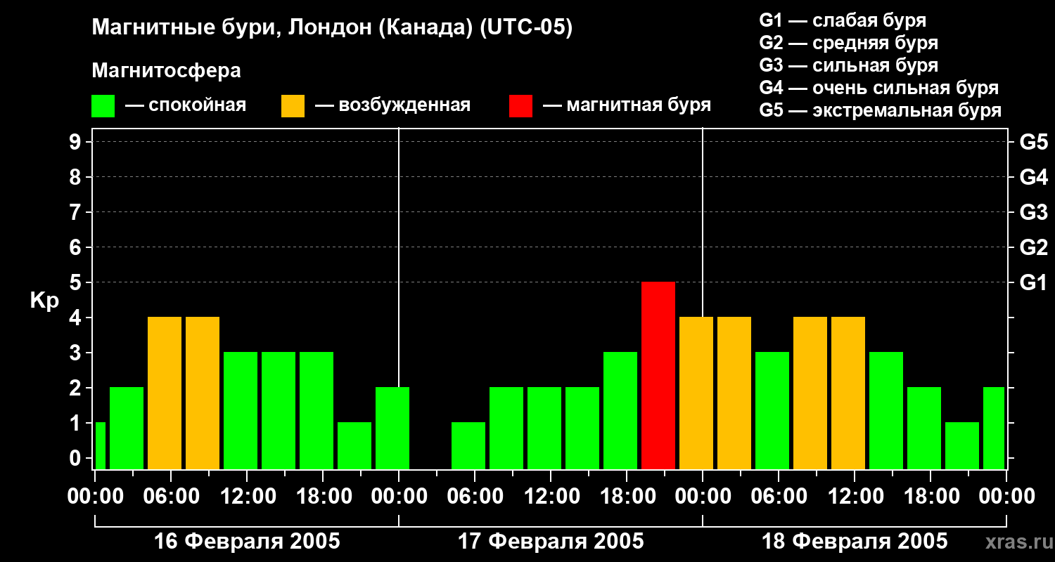 Магнитные бури Лондоне (Канада) в феврале 2005 года