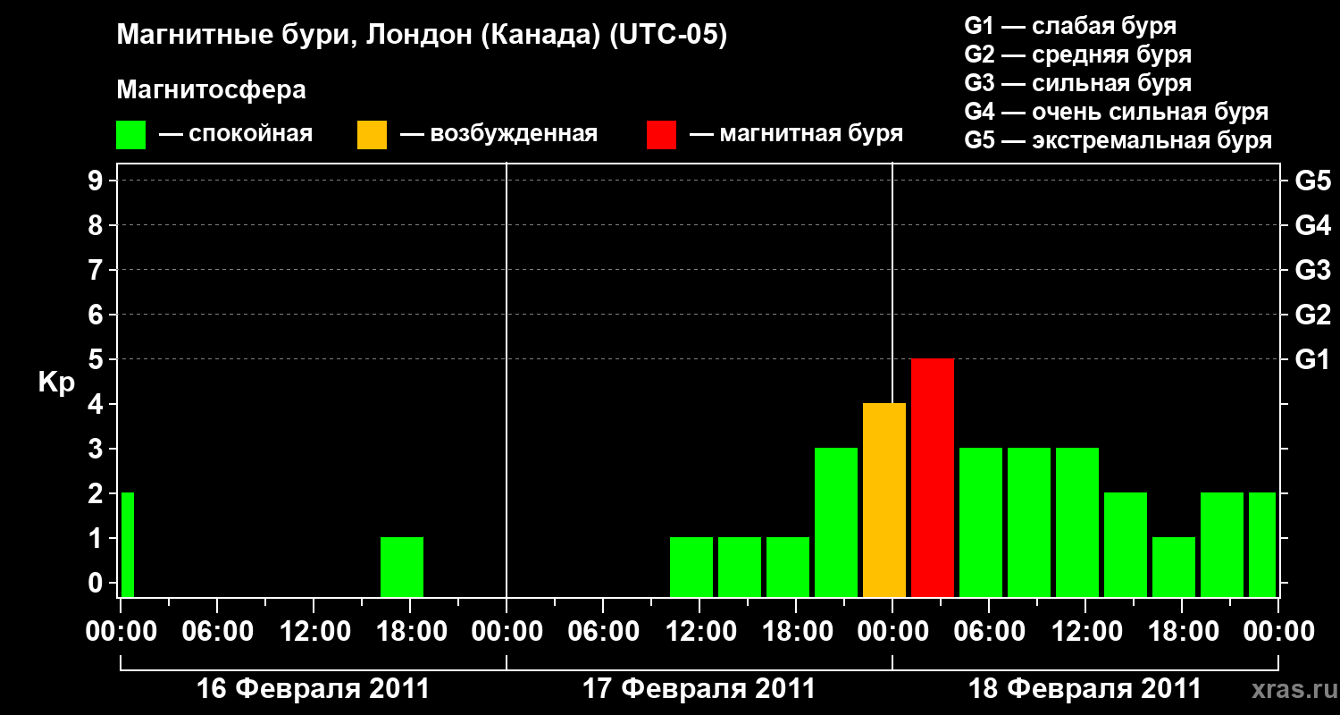Магнитные бури Лондоне (Канада) в феврале 2011 года