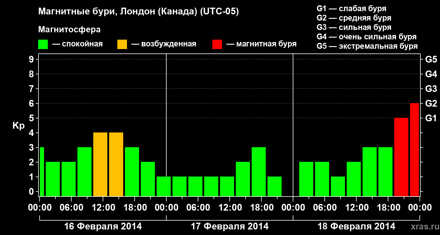 Магнитные бури Лондоне (Канада) в феврале 2014 года