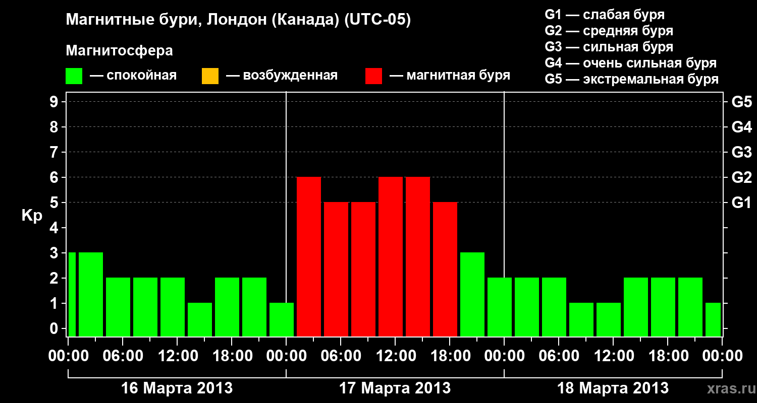 Магнитные бури Лондоне (Канада) в марте 2013 года