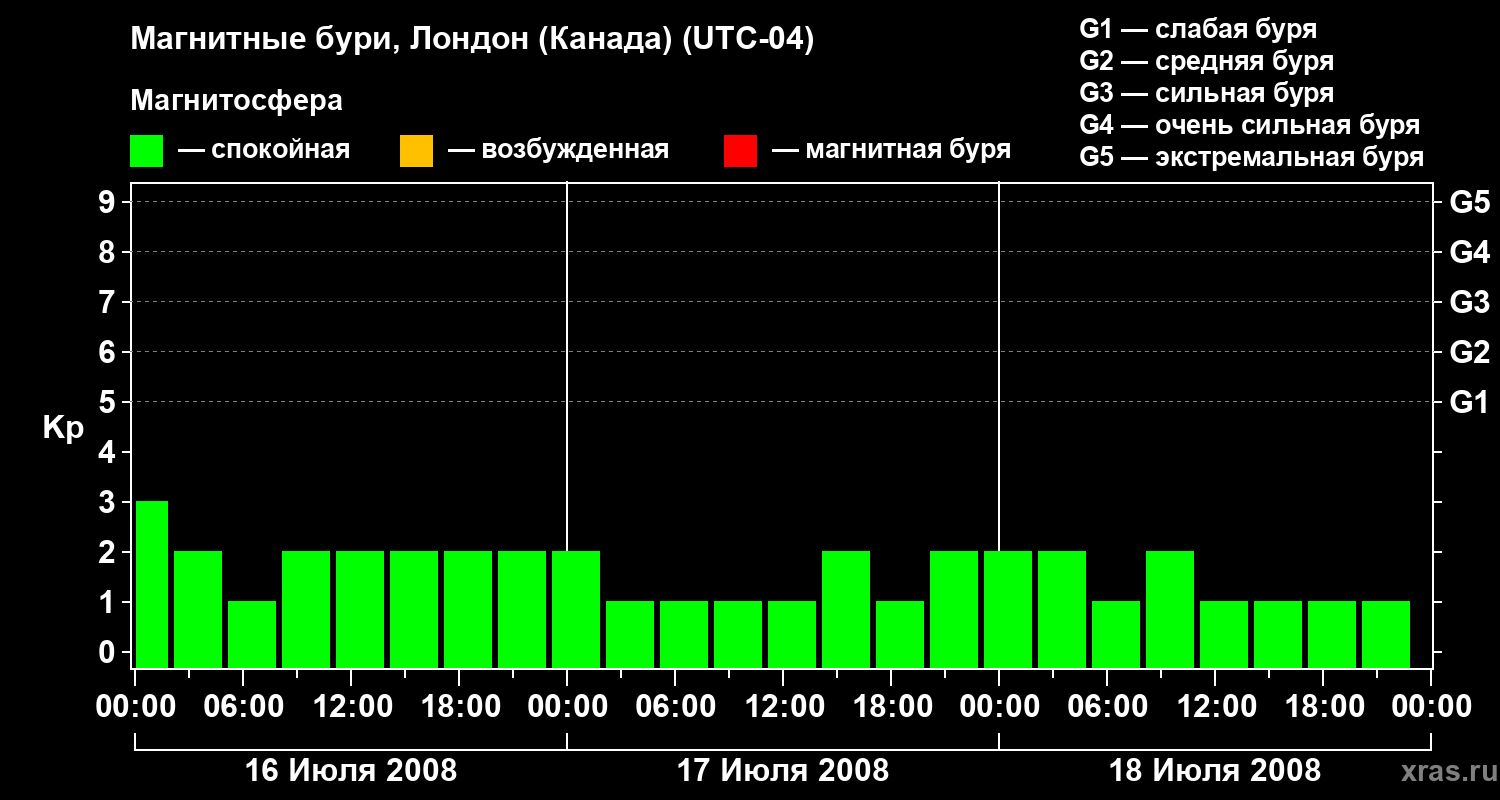 Магнитные бури Лондоне (Канада) в июле 2008 года